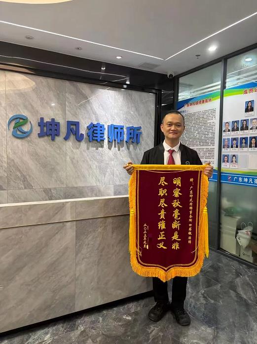 近日,广东坤凡律师事务所田书锐律师收到了当事人送来的一面锦旗,锦旗上“明察秋毫断是非,尽职尽责维正义”的字样,既是对田书锐律师专业能力的高度认可,也是对其敬业精神的由衷赞誉。