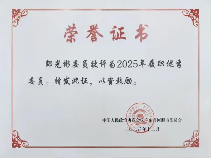坤凡喜讯||广东坤凡律师事务所合伙人邹光彬律师荣获政协河源市委员2025年履职优秀委员